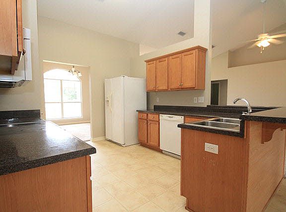 Enjoy your tranquil view of Lake in this 4/2 home located at the end of street. This oversized 3/4 acre lot offers a peaceful atmosphere with woods bordering one side. Home has new paint and carpet throughout. Resort style subdivision inclusive of stocked pond for fishing, launch for kayaks, canoes or paddle boats (non-motorized), gazebos, and new playground. Centrally located near amenities. Easy commute!!
