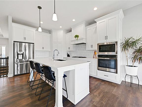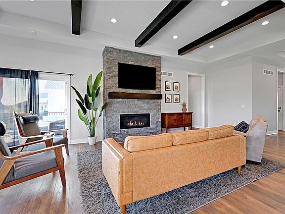Your move in just got easier!! Seller will pay $2500 in Buyer Closing Costs with an acceptable offer!! You can be in a new home just in time for the holidays!! Discover effortless style and comfort in this beautifully designed 4 bed 3 bath reverse 1.5 story home, perfectly situated just moments from Lake Olathe. Thoughtfully crafted for modern living and entertaining, this residence combines elegant details with a welcoming atmosphere. Step inside to find soaring ceilings, large windows that flood the space with natural light, and a cozy fireplace that anchors the open main level. The gourmet kitchen features quartz countertops, stainless steel appliances, a gas cooktop, and an expansive island - ideal for gatherings with family and friends. The finished lower level is built for relaxation and fun, offering a spacious recreation area, wet bar, guest bedroom, and full bath - perfect for movie nights, game days, or visiting guests. With over 80k in upgrades, every detail has been thoughtfully considered. Enjoy. peaceful evenings on the deck overlooking the fenced in backyard or take advantage of the nearby trails, parks and water activities at 170 acre Lake Olathe. Lake Olathe is great for kayaking, paddle boarding and fishing as well as a swimming beach. This home has direct easy access to those trails for your daily walks. Come see this today and make us an offer!!!