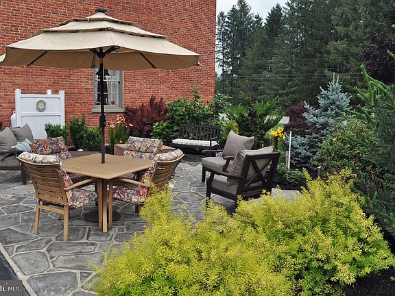 With few properties for sale in McConnellsburg & only a few more in ALL of Fulton County, this all brick, with stone foundation, beautifully maintained, picturesque property convenient to the road but having state game land along one side and the rear property lines & having only one neighbor . You get the feeling of privacy. Hiking & bike trails across the road. Property has been surveyed recently and is marked. Owners have left the historic integrity while updating with the modern conveniences we'd expect. Windows, roof (5 yrs old), outdoor painting are just a few of recent updates. The huge 2 story (with water) detached 28x32 2 car garage with internet is a dream come true for many! Property has been recently surveyed and marked. This property only needs people that will love and appreciate it as all of the previous owners obviously did! BRING ALL OFFERS *Ask agent about the possibility of switching coal furnace to oil furnace at expense of sellers!* Internet is through Century Link and has 1 gig plus. Underground irrigation on side of home, patio furniture conveys, and 3 inverter window unit a/c's for upper rooms, all convey.