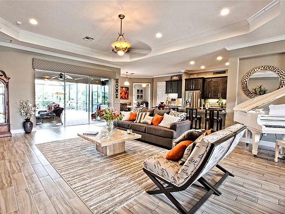 This absolutely stunning single-story custom-built home is just three years old and is peacefully nestled on nearly a half-acre, water front lot surrounded by lush and lighted tropical landscaping in the prestigious Twin Rivers development.This home offers breathtaking and serene early morning sunrises, abundant wildlife and total privacy.The paver lanai features a solar heated, dark bottom pool with sun shelf. The kitchen leaves nothing to be desired for the truly gourmet chef. It boasts a 36- inch Dakor, Dual Fuel Professional range with pot filler plus a built- in microwave and wall oven, and stainless-steel appliances including a 30 cubic foot refrigerator.A five- foot square walk in pantry with stainless steel shelving, built in bar with wine cooler, granite sink and substantial granite counter space render this a cook's dream kitchen. This open concept floor plan includes a formal dining room, eat in kitchen with an aquarium window overlooking the lanai, pool and lake. Wood grain porcelain tile flows through-out the entire home.Eight-foot doors, crown molding, trey ceilings and pocketing triple sliding doors highlight the central living areas with additional upgrades throughout this home.Twin Rivers has very low HOA fee and no CCD costs HOA includes access to playgrounds, a soccer field, a basketball court, a beach volleyball court, hiking trails, boardwalk & private community boat ramp with fishing pier on the Manatee River.This home is a must see for the discriminating buyer.