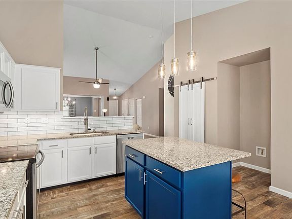 Welcome home to this stunning ranch with custom finishes throughout in highly sought after Preston Woods neighborhood! Wide open floor plan makes entertaining and everyday living a breeze! Dream kitchen features white cabinets, subway tile backsplash, granite countertops, stainless steel appliances, large center island and slider access to your stamped concrete patio overlooking fenced backyard. Gorgeous porcelain tile throughout dining, kitchen, laundry room and hall bath! Cozy up in the vaulted great room with gas fireplace and surround sound speakers. Incredible lower level has spacious rec/family area, fourth bedroom, full bath and tons of storage space. This home has practically been updated from top to bottom, including the roof and A/C both being replaced in 2020. Come enjoy everything the neighborhood has to offer as well with pool, clubhouse, playgrounds, walking trails, and community events throughout the year.