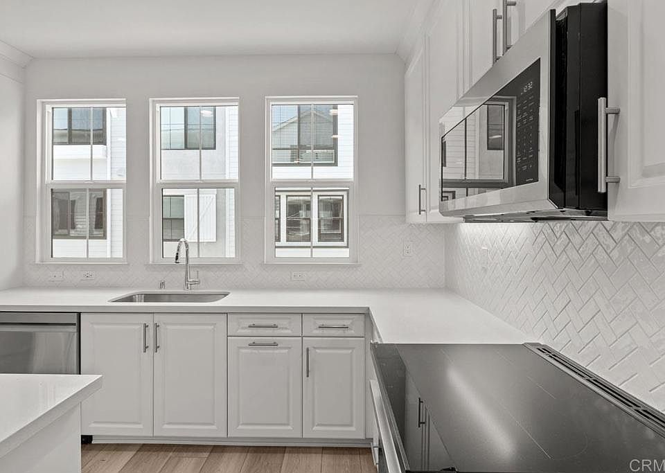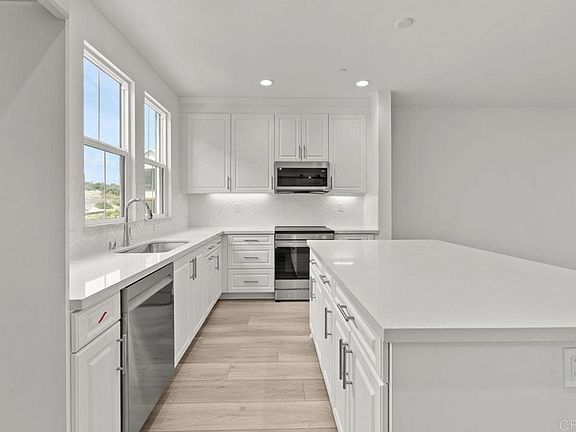 Experience modern elegance in this stunning, three-story home, which showcases an open floor plan with high ceilings and luxury vinyl plank flooring at main level. The kitchen boasts an island, thermofoil cabinets, quartz countertops, custom tile backsplash and Samsung® stainless steel appliances. The primary bedroom features a walk-in closet, plush carpeting and connecting bath that offers cultured marble countertops, oval undermount sinks, a walk-in shower and ceramic tile flooring. Embrace eco-friendly living with a solar energy system, LED lighting, electric charging station pre-wiring and smart thermostat. In house financing is available. Highly rated Carlsbad schools and just minutes from the beach. Easy access to beautiful Carlsbad Village. Why deal with the expense and hassle of rehabbing a used out of date home? Rare opportunity to get new on the coast!