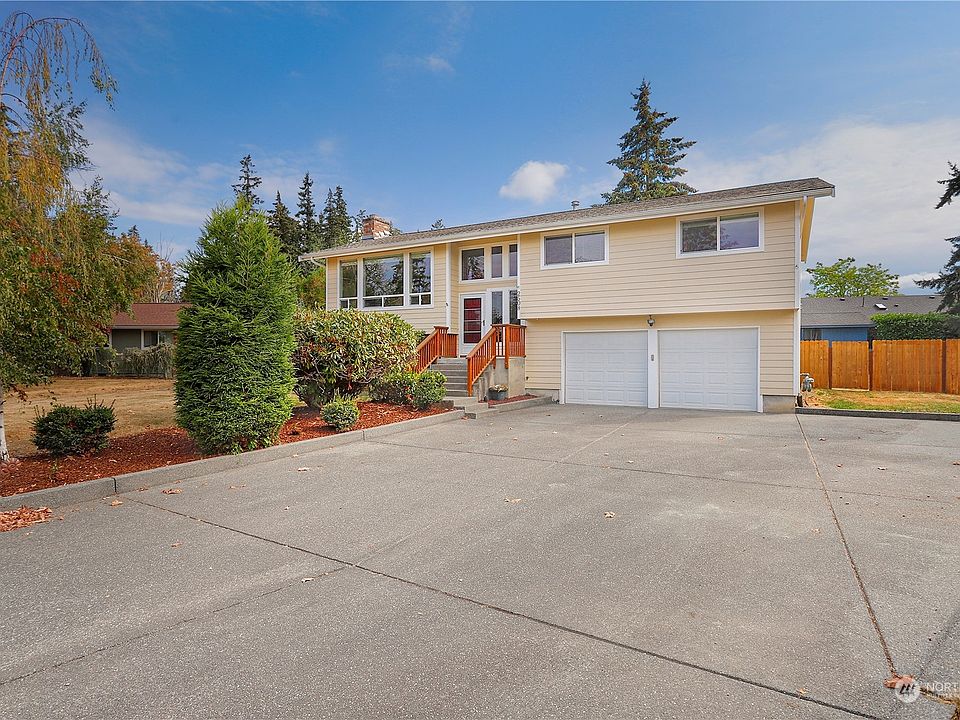 GREAT location tucked back on a dead end street and cul de sac. Bring the RV, boat and the toys! 4 bedrooms, 2.25 baths in just under 1900 sqr ft with Air Conditioning! Upper level features: living room w/ a wall of windows for tons of natural light and a wood burning frplc. The kitchen has a large dining area with easy care tile floors and pantry. Primary bedroom w/ ceiling fan/light and remodeled 3/4 bath. There are 2 more bedrooms & a full bath. Downstairs: Rec room/bonus room, frplc & a 4th bedroom or office. Utility rm w/ half bath and storage area under the stairs. Spacious 2 car garage. Huge back deck for relaxing, garden space & large fenced back yard for the critters. Easy commute to everything! One year home warranty too! No HOA.