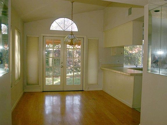 White kitchen cabinets. Stainless appliances. Hardwood floors in high-traffic areas. Cozy wood-burning fireplace in living room. Has gas starter. Court location. Private backyard with no rear neighbors. Third bedroom has door, but no closet.