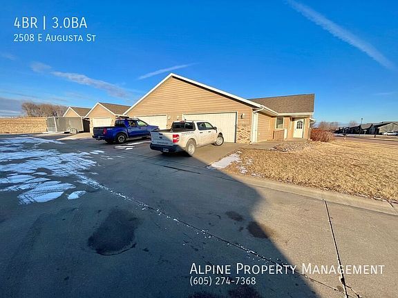 Call today to schedule a tour of this spacious 4 Bed/3 Bath twinhome for rent at 2508 E. Augusta in Brandon, SD!! The main level features 2 bedrooms including your large master suite with attached bath and walk-in closet! There is also main level laundry with washer/dryer included along with your living room, kitchen and dining that has slideouts to the back deck! The basement is finished with a 2nd large living area, 2 more bedrooms and 3rd full bath! Attached 2 car garage and central air as well! - $50 application fee per adult - $1795 security deposit - Tenants are responsible for all utilities - Lawn/snow care provided by owner! - Pet friendly(2 max, breed restrictions and fees apply) and non-smoking - Section 8 accepted if your voucher meets the marketed rent amount - Alpine Benefits included for $25/month extra (see website for full details) Professionally leased and managed by Alpine Property Management Attached Two Car Garage Back Deck Central Heat/Air Lawn And Snow Care Lawn/Snow Care Included With Rent!! Master Suite Non Smoking Online Tenant Portal Pet Friendly Second Family Room Stove Stovetop