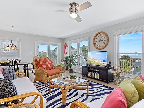 As soon as you see Blue Moon Rising West, you'll know that you have arrived in paradise & you're at home. This coastal retreat boasts 3 spacious bedrooms & two & a half bathrooms. The reverse floorplan is designed to showcase the tranquil water views of the Bogue Sound with peeks of the Atlantic Ocean. The open floorplan offers a fully equipped kitchen with SS appliances & a large granite countertop with additional seating. The dining area & living room are adorned with stylish, coastal décor for a comfortably, modern vibe. A multitude of windows brings the natural light in to remind you that a day on the coast is full of possibilities. Grab your kayak or fishing gear & head down to the shared community dock. Or grab your chair, surfboard & towel for a few hours on the beach to dig your feet in the sand & play in the waves. The beach access is close by & perfectly located directly at the end of 25th St. An enclosed, outdoor shower makes it easy to rinse off before relaxing on the wrap around decks to enjoy dinner alfresco & sip your favorite beverage while watching the sun set over the sound waters. The property conveys ''turn-key'' to enjoy immediately or to welcome rental guests without lifting a finger. The heart of Emerald Isle is a short distance down the road where you can dine at delicious restaurants with locally caught seafood, or shop at the boutiques for that special gift. Have a day of fun at the waterslides, explore Emerald Woods trails & frisbee golf course, rent a jet ski for fun on the water or challenge yourself to a round of mini-golf & go-cart racing. The community pier for all 4 of the duplexes. No flood insurance required. Back peg sound front lot. Vinyl siding & water softener equals easy maintenance, extra storage room & NO HOA fees, this could be the perfect opportunity to own a coastal retreat that has it all! With so much to offer, this property will remind you why life is better on the coast.