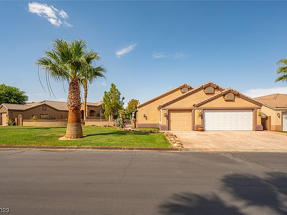 Super golf course home in Laughlin! Situated along the fairways of the Mohave Golf Club, the views are stunning from your backyard which includes a spa, built in bbq and large covered patio! Mature landscaping and a huge lot afford you the privacy and room you desire. The floor plan is wide open, with extra high ceilings, large windows and sliders, granite counter tops and island kitchen. Over 2300 sf of living area. The primary bedroom - fit for royalty - has an extra spacious sitting area with its own slider to the back patio. The second bedroom is located off of the entry and could be a home office. The third bedroom will have your guests thrilled when visiting! This 55+ golf course community has tennis courts, pool, spa and fitness center to enjoy!. The HOA maintains your front lawn for you so its easy and carefree living! Enjoy the river, shopping, restaurants and entertainment close by! You cannot beat this location on a quiet cul de sac. Call to schedule your viewing today!