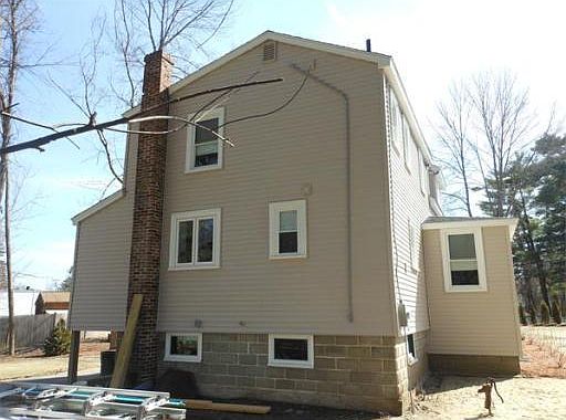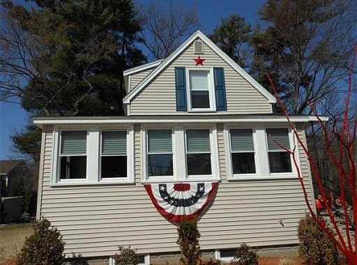 Updated and remodeled Colonial Cape, 1/2 acre lot is wooded in back. Recently remodeled to include: Roof, Vinyl Siding, Windows, Wiring, Plumbing, heating system, bathroom fixtures, recessed lighting, refinished wood flooring, Sparkling Natural Woodwork throughout, beautifully redecorated. New kitchen with upgrade cabinets-new appliances- and wood flooring. Master bedroom is King sized (20x15) with walk in closet. Enclosed heated front sun room/ porch and office could easily lend itself to business use. Lamp Posts on either side of driveway and nicely set back from the street. Areas of driveway with crushed stone will have hot top binder coat.