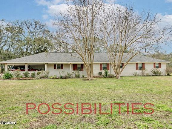 Charming Riverfront Estate on just under 6 acres. Nestled on a picturesque 5.89-acre property, this 4-bedroom, 3 bath home offers a perfect blend of comfort and natural beauty. A stately oak-lined driveway welcomes you to this private retreat, surrounded by a serene pecan tree grove and boasting 500 feet of Bayou Teche River frontage-ideal for peaceful mornings or outdoor adventures. Inside the home features and updated kitchen with granite counters, stainless appliances and a breakfast area. You'll notice the ample storage in all of the cabinets and pantry. Off of the kitchen is a large formal dining area that is large enough for a table of 10 or 12. The spacious living area has a wet bar, tons of built-ins and a wood burning fireplace. The master suite has already been updated for you with a freestanding tub, tiled shower, and a granite double vanity and a large walk-in closet. The guest bedrooms are large and great closet space. The 4th bedroom would make a great office or craft room. The 2nd and 3rd bath have been updated with granite counters. Whether you're looking for a family home or a place to embrace the outdoors, this home has it all. Brand NEW Roof!