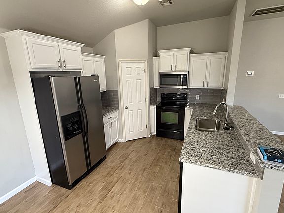 Spacious 3 bedroom, 2 bath house with newly renovated tile floors throughout whole house. New carpet in bedrooms and closets. New microwave above range. Newly installed granite countertops and sink. New paint throughout the whole house. Newly updated fence in backyard. Great location, great schools. Lawn and Landscaping included into rent. Storm shelter in garage.