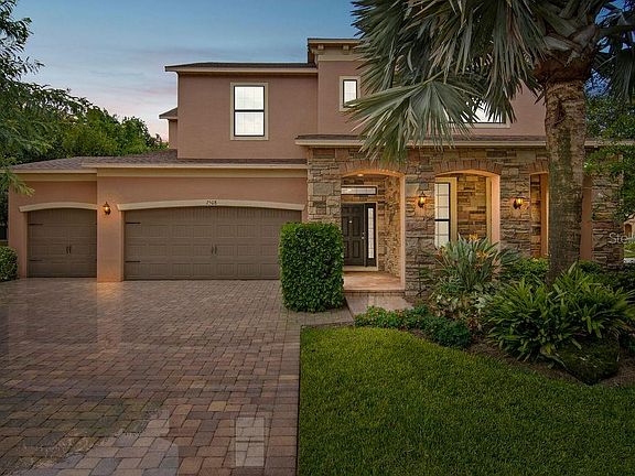 Come see this wonderful turnkey home located in a one-of-a-kind gated community in Ocoee. This 4 bedroom 3 bathroom home is situated on a corner lot with 1/3 acre of tropical lush landscaping that can be seen from every room, creating natural privacy from the neighbors. Once inside, upgrades abound throughout starting with a gourmet kitchen that showcases a double oven, natural gas stove, granite countertops, huge island as well as a walk-in pantry to boot. There's a separate dining room, living room, breakfast nook and 1 bedroom, with a large bonus room that could be used as an in-law suite, all on the first floor. On the second floor enjoy 2 more bedrooms, another bonus room and a large master bedroom with expansive master bathroom featuring granite countertops. On the enclosed screened porch you will find a 6 person hot tub with brick pavers, great views and privacy from neighbors. Location is key as this home is close to the West Orange bike trail and major roads including the 429, turnpike and 408.