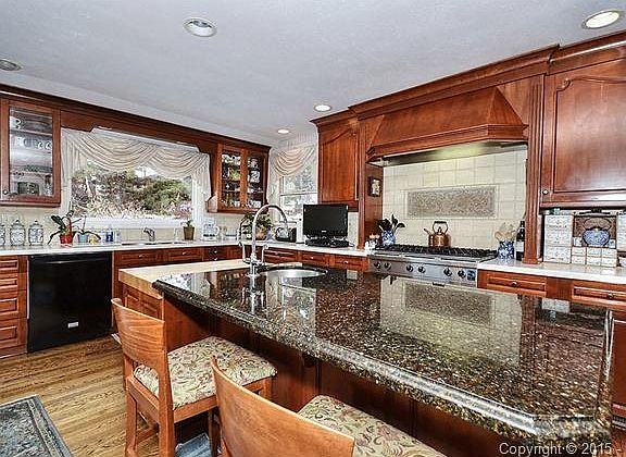 Gorgeous one-level living on an exceptional lot w/Pikes Peak Views! Gourmet kitchen w/ALL the bells and whistles! This home makes you smile as you walk up the winding brick pathway into the welcoming entry and bright living room. This home also boasts an impressively large dining room! The garden/patio area off the living & kitchen is another well-planned feature. The master retreat has a classically styled custom fireplace and a generous bath with top-notch finishes. New carpet in the basement and more! See supp remarks: More pictures coming soon... Remodeled kitchen with granite and corian counters, commercial style six burner cooktop, sub-zero refrigerator, walk-in pantry and a prep sink. Hardwood throughout the main level to include the master bedroom. Large main level living/great room with a wood burning fireplace with a custom hearth and mantle. Spectacular master retreat! Gas fireplace with a custom stone surround, crown molding, two walk-in closets and attached five piece master bath with a jetted tub, walk-in shower, duel vanities with granite counters and tile flooring. Basement has new carpet and paint, family room with a wet bar. Two outdoor living spaces 23x24 deck and 11x26 patio areas with trex decking. Dual furnaces, ac units and water heaters. Very private setting, fully landscaped with sprinkler system and fully fenced backyard.