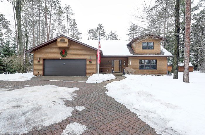 High above the water on a wooded .80 Acre lot w/ 150 feet of water frontage on the Wisconsin River sits this beautiful custom made 1.5 story contemporary home. 3 bedrooms, 3.5 bathrooms, and open concept with elegant vaulted ceilings. Main floor laundry & master suite with whirlpool bath. Kitchen has granite countertops & island. Large living room with wood burning fireplace, dining room area, sitting room, half bath. Open staircase to the 2nd floor w/ loft, 2 large bedrooms, & a full bath.