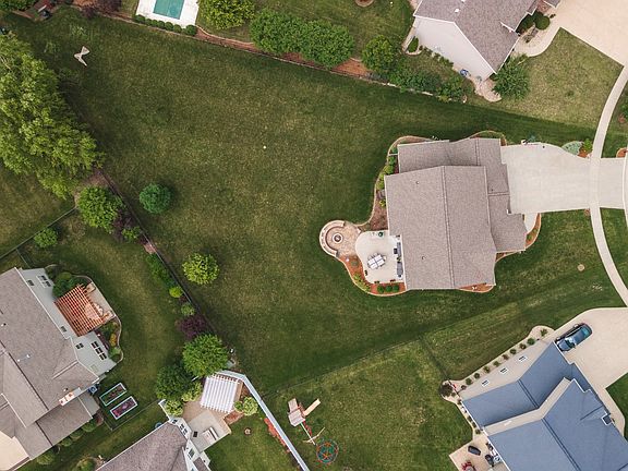 Quality built home with huge pie-shaped rear yard, one of the largest lots in the neighborhood! Enjoy the spacious covered front porch, 2 story open foyer, formal DR, main floor home office, lovely kitchen with custom cabinetry, granite c-tops, stainless steel appliances, walk-in pantry, island with breakfast bar, large eating area open to family room with hardwood flooring & gas fireplace. Lockers off garage, powder room, large owner's suite with luxurious master bath & WIC, 2nd floor laundry, 4 bedrooms on 2nd floor and 5th bedroom and full bath in basement along with 2nd family room with bonus game area and wet bar/serving area with cabinetry. Plenty of storage and a 3 car attached garage. Park-like rear yard features additional landscaping, extended patio as well as a paver fire pit, perfect for entertaining. Fresh interior wall paint throughout most of the home, beautiful plantation shutters in some of the rooms, air purifier & humidifier, and so much more! Great location and Unit 5 schools!