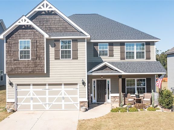 5 Bedroom 3 Bath Craftsman style home w/ easy access to I-85. Open concept great room & kitchen great for entertaining or family gatherings w/ adjacent covered patio. You'll find a wood burning FP in the great room for keeping cozy on cold winter nights. The large kitchen w/ breakfast area has a large eat at island, walk-in pantry and stainless appliances. Formal dining room has coffered ceiling and wainscoting. You'll also find a nice size bedroom great for your guests. Upstairs you'll find an impressive 24' x 20' master suite w/ vaulted ceiling, en suite bath with garden tub, shower, dbl vanity, water closet and 10' x 12' walk-in closet. 3 more nice size bedrooms offer plenty of room for the kiddos. You'll also find the laundry room upstairs for convenience. Nice, privacy fenced backyard w/ gates on both sides of home, covered patio & kids outdoor gym. All countertops are granite. HVAC is dual-zone. Two 55-gal water heaters & United Hydro water treatment system (softener/filter).