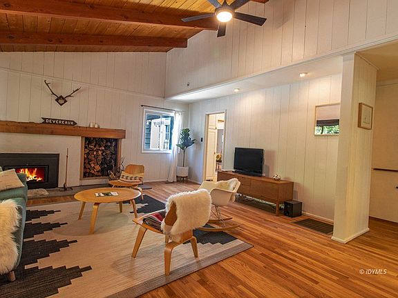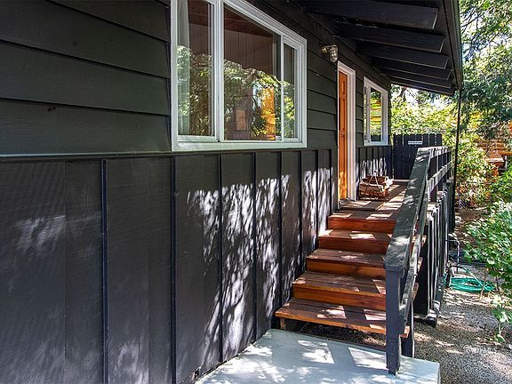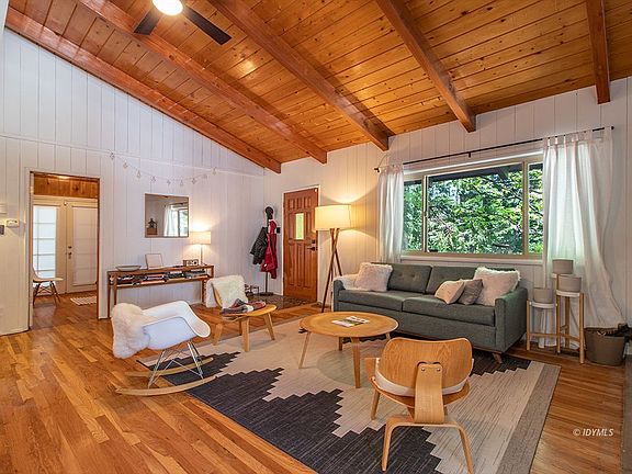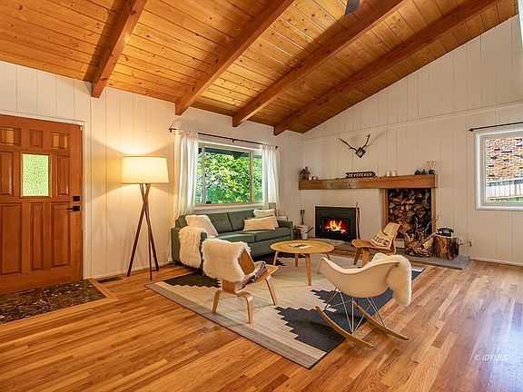 Completely renovated mid-century modern cabin w/stunning views of Lily & Suicide Rocks, this impeccably updated 2Bdrm/2Bth w/separate art study/office has it all! This light + airy home features original oak flooring throughout, vaulted cedar t/g ceilings, dual-pane windows, efficient wood-burning insert for cozy nights by the fire, full Dining Rm, central heat/AC + security system. Newly-renovated kitchen includes subway tile, oak butcher block counters, Silgranit sink, open shelving + stainless appliances. Bedrooms enjoy French Doors accessing the upgraded wraparound redwood decking where one can sit + enjoy the wildlife + welcoming outdoors. Bathrooms have been completely updated, featuring slate tile flooring & a luxurious slipper tub in Master Bth. Upgraded laundry/mud rm has loads of storage. The newly-landscaped fenced backyard boasts views & a gorgeous new all spruce studio w/ductless heat/AC & slate patio. A new concrete driveway allows easy snow removal w/room for multiple cars +/or RV. Freshly painted exterior provides a modern finish. Walk to hiking trails. Perfect as stunning retreat or vacation rental.