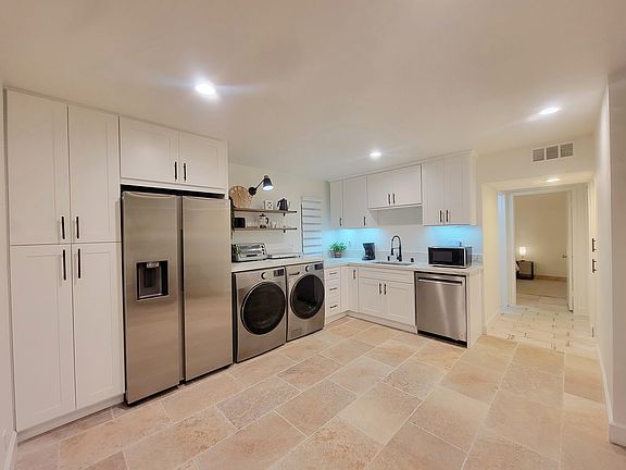 Brand-new appliances: refrigerator, dishwasher, microwave, washer, and dryer