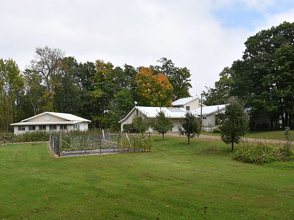 Wow! This beautiful lake home is perfectly placed on 3 acres with 450 feet of shoreline. This lake home has a great swimming beach for those kids to enjoy the lake. Also enjoy the many features of this private setting with a Large garden, detached garage and 2 car attached garage, steel roof, vaulted ceilings, 2 fireplaces, cedar closet, wet bar, one level living, lakeside deck, master bath and large laundry room.