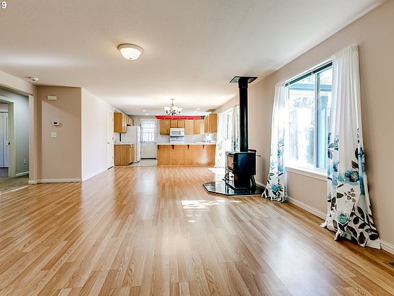 Bright and inviting! This single level Gansen home offers a popular Open floor plan, New interior paint, Huge kitchen with pantry, Generous master suite with walk-in closet. Slider door leads to Covered patio, Hot tub and Fire pit - great for entertaining. Fenced yard has raised garden bed. Interior laundry. 15 min commute to Eugene and approx. 45 minutes to the coast. Conveniently located near shopping, parks, library, medical, & more!