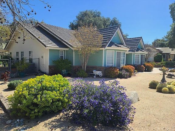 CHARMING, CHEERFUL AND IMMACULATE RESIDENCE WELL-LOCATED IN SDCE RESORT COMMUNITY! This 4 Bd/2 BATH Recently Remodeled and Upgraded Residence sits on a Large Very Private Lot w/Fully-Fenced Level Backyard and Backs Serene Picturesque Seasonal Creek with Lush Oaks. Open Flowing Floorplan ***features 3 Dining areas: A Breakfast Bar, A Bright Bay-Windowed Front-Facing Breakfast Room (or Private Office?). Plus a Large Bayed Dining Area Open to Kitchen and Expansive Backyard View. Both Dining Rooms feature Tray Ceilings*** Formal Entry Opens to Expansive Vaulted Living Room with Floor-to-Ceiling Raised Hearth Brick WB Fireplace, Oak Flooring and Built-In Bookcases. French Doors and Windows Grace Rear of the Home Looking out to Covered Dining/Patio Areas and Outdoor Room. *** Open=Ended Sleek Kitchen features Latest Color Cabinetry and 'Quartzite/Marble Countertops & Wine Cooler. ****Primary & Ancillary Bedrooms at Separate Ends of the Home, Two Access Back Garden Views*** Primary Suite contains Large Walk-In, Jetted Bathtub and Separate Spacious Shower, Dual Lavs & Patio Access.*** Bdrms are Spacious and Bright - Hall/Guest Bath. 4th Bedroom Accesses Attractive Outdoor Room. Hard surface floors throughout Living areas and One Bedroom & sound-proofing carpet in remainder.*** BACKYARD: Great for Pets: fully Fenced Also contains Small RV Parking, Two Separate Fenced areas for Dog Run, Chickens or? 2 Sheds and Horse Shelters at Creek.......... Finished GARAGE w/ Private Flex Room & Separate outdoor access for Client-Office/Man Cave/Exercise or Craft Room..... Ceiling Fans Throughout. ***SMART Features Included are: Smart Garage Door Opener, Thermostat and Irrigation System.*** Plumbed for Water Softener if desired.*** See List of Amenities of RESORT LIVING - Pools, Parks, Basketball, Spa, Tennis, Golf, Horseback Riding, stables, 55 Miles of Trails, 2 ELEMENTARY SCHOOLS, Summer Programs, Inn, Banquet Facilities, Restaurant & Bar, Pro Shop, etc. on SDCE Website. Residence is within walking distance of Ramona Oaks Park, Pool, Rec Center and Summer Concert Band Gazebo. See Pictures of Amenities Posted.