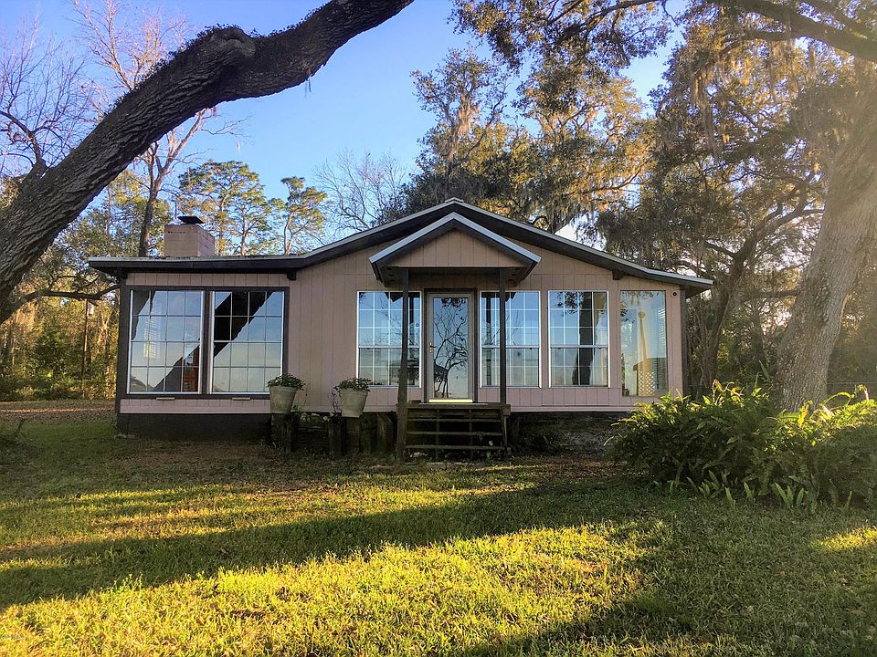BEAUTIFUL WATERFRONT CABIN! This updated home overlooks Lake Kerr, gorgeous views, shade trees, boat house, and a one of a kind dock. Enter the home and you'll be blown away by the open layout, beaming natural light, and the huge fireplace. 2B/2B, updated kitchen, and a gigantic walk-in pantry. The extra large detached shop/garage features plenty of room for work or play, as well as a 1/2 Bath. The property is totally fenced in and private! There's even an unfinished 1B/1B touching the water that's a little TLC away from an added bonus! This property is too unique to not give a look!