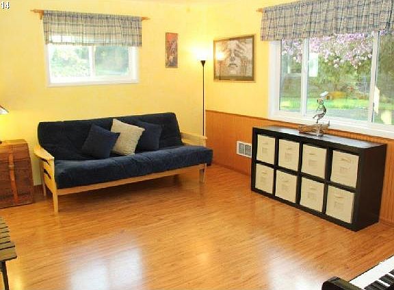 PEACEFUL COUNTRY HOME w/ WATERFALL. Immaculate Ranch Home on 8+ acres. Open Kitchen/Dining/Living Room w/Fireplace, Perfect for Family & Entertaining. Large Newer Windows Overlook Patio & Lawn w/ Flowering Cherry & Evergreens. Exterior Features Two-car Garage, Shop, Carport & RV Parking. Upper Acreage Includes Hazelnut & Apple trees, Grape Arbor, Berry Garden. Lower Acreage Forested w/Large Trees, Falls Along Bear Creek & Pond w/ fish!