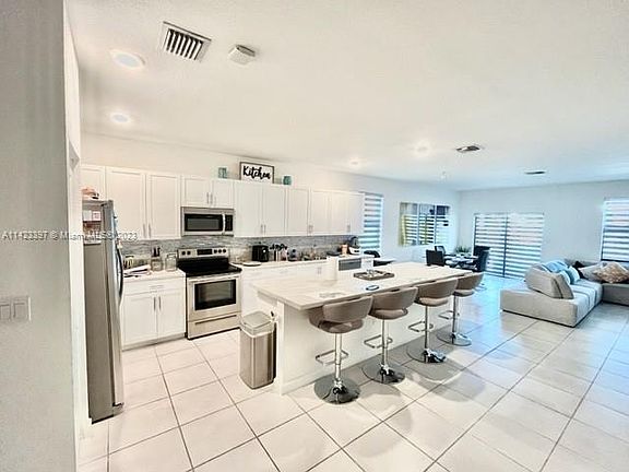 Modern and bright 3/2.5 Twin home with garage built in 2020. Open floor plan, large open kitchen with SS appliances and island. High ceilings. All bedrooms upstairs for privacy, and a 1/2 bath on first floor. Covered terrace and fenced private yard for entertaining. Close to Black point Marina and FL Turnpike. Community has Clubhouse with pool & fitness center.