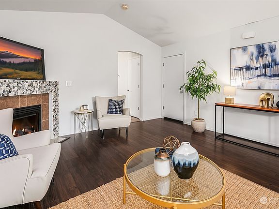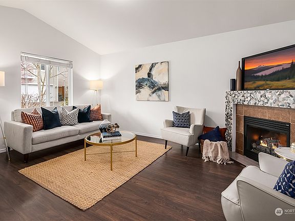 Easy living at this 1-story home in Fieldstone North community. Fresh interior paint makes this home move-in ready! Spacious living room with gas fireplace and newer flooring. Large kitchen with island, gas cooking, lots of counter space and pantry. Slider off dining room leads to covered patio - perfect for barbecuing this Spring. 3 bedrooms including large primary suite with attached bathroom. Additional full bathroom in hall. Fence backyard. 2 car attached garage. Community features Park with playground and sport court! Minutes to train, transfer station, i5, restaurants and grocery.