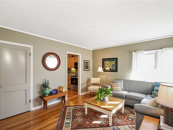 Wow! This Beaverdale 1.5 story has been lovingly maintained and updated over the years. Step inside and be greeted by a sunny living room with original hardwoods. There are two bedrooms and a full bath on the main floor as well. The updated kitchen boasts maple cupboards and maple plank flooring that continues throughout the eat-in area and family room with a fireplace and built-ins. Wood stairs lead to the second-story addition with 3rd bedroom (office, playroom, workout space), ¾ bath, dressing table, and walk-in closet. The lower level is a tidy space for living if you choose. All windows have been replaced. French doors off the kitchen lead to a spacious deck with a sunshade, 2-car detached garage, and well-landscaped yard w/ rosebud and maple trees. Whether inside or out the space is inviting!