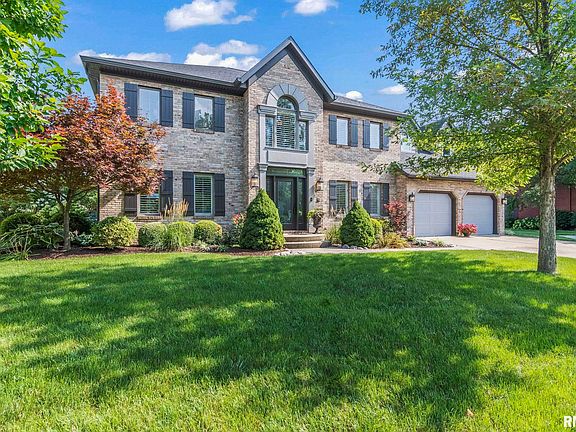 In a located in prestigious westside Tara Hills subdivision. Near Illini Country Club Golf course is this stunning, updated and immaculate 4 bedroom, 2.5 bath two story with a two and a half two car garage and extra parking pad. Totally redesigned eat in kitchen with stylish cabinets, stainless steel appliances, quartz countertops, fabulous lighting fixtures, island and breakfast bar and a pantry that make it a chef's dream. New tile flooring in the kitchen and the bath and the other updates. 3/4" oak flooring flows throughout the dining room, the living room, hallway, and the upstairs loft. What a delight to entertain in this home! The primary bedroom ensuite provides a quiet retreat, spacious primary closet. and a primary bath with double sinks, wonderful shower, and soaker tub. The other three bedrooms have nice closet space. The loft area could be an office, gaming room or has lots of potential uses. The lower level has a recreational room and great storage. In 2021, the home was updated with new siding, new roof, garage doors, gutters, soffits, facia , & ProVia doors & windows. Step out into the resort like privacy fenced backyard with a 20' X 40' pool with an updated liner in 2023 and 800 sq ft of fresh concrete deck, updated landscaping, and lighting.
