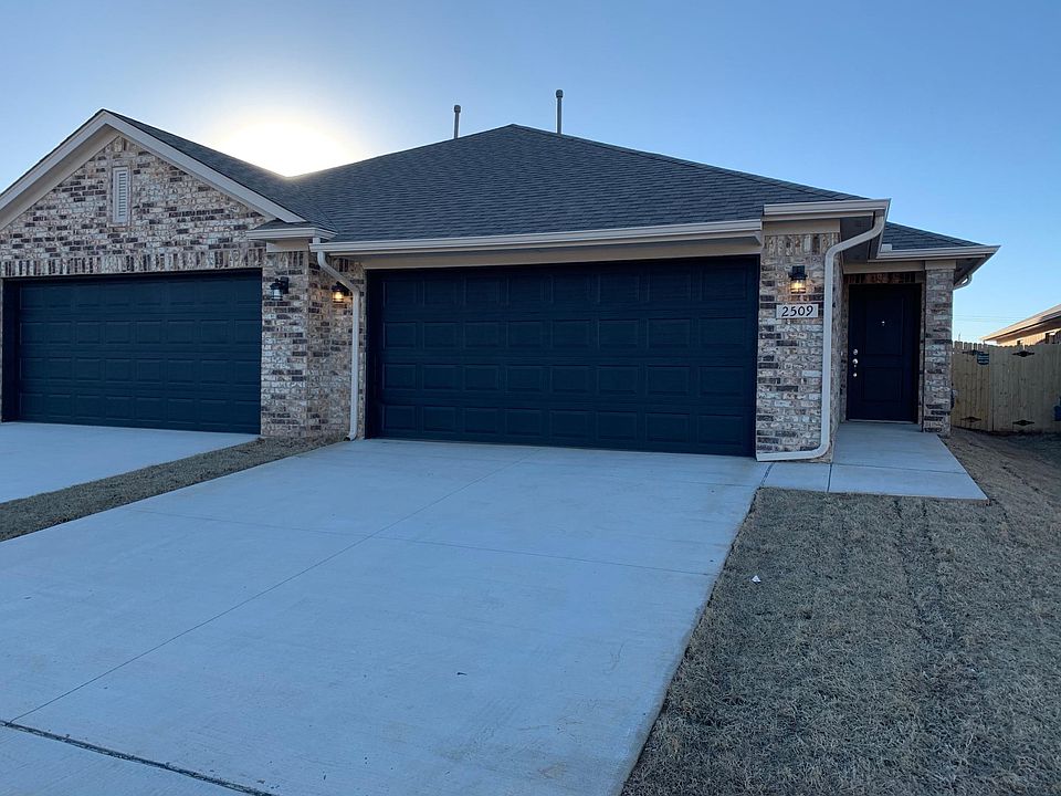 BRAND NEW CONSTRUCTION in a GATED COMMUNITY. 1250sqft DUPLEXES. Every home has a fenced yard with weekly lawn maintenance included. The community features a walking trail, play ground, picnic area, future pond and more! OKC utilities in the Mustang School District. Convenient access to shopping/dining in West OKC, Mustang and Yukon. Minutes from I-40 on Morgan Rd with easy commute to the Kilpatrick Turnpike. Every floor design features stainless steel appliances with a Gas range and built in microwave. Wood look tile throughout the main living areas and 10ft ceilings for a spacious feel. This three bedroom is the most popular design with great flow and storage throughout. CALL FOR MOVE-IN SPECIAL