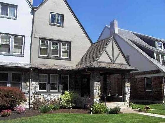Stone tudor revival w/wonderful front porch! Formal entry to spacious, bright rooms w/Brazilian cherry floors,deep window sills and original wood trim. Gas FP. Maple kitchen w/new appliances,corian. Large bath w/double sinks, gorgeous glass tile and whirlpool. Abundant closet space. 2nd flr porch overlooks delightful outdoor living space w/deck and spectacular pond. Recent roof, painted exterior, repl windows. Warranty. A real gem!