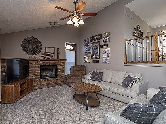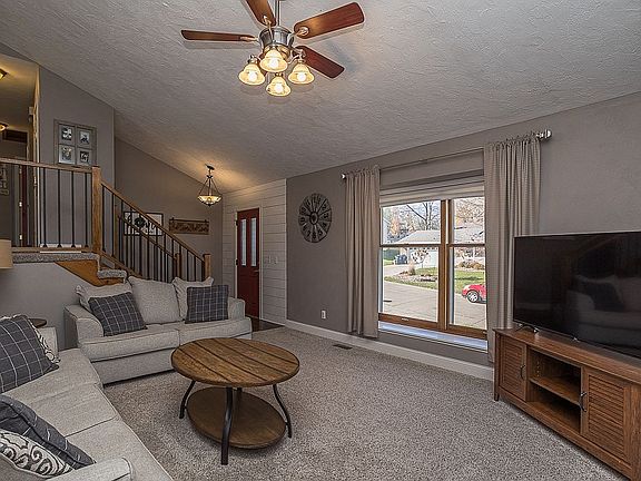 This charming split-level is located in a family-friendly neighborhood, on a quiet street, close to Emeis Golf Course and Emeis park. The main level has carpet and laminate floors, vaulted ceiling, formal dining room, and features a fireplace. The kitchen features laminate floors and laminate counters. Appliances stay with the home. The master bedroom is located on the upper level and features carpet floors and conventional ceiling. The attached master bath includes vinyl floors, granite counters and Tub/Shower Combo. The Upper level includes 3 bedrooms and 2 full baths. The finished walkout lower level features a fireplace, wet bar, half bath, storage area and laundry room. Outside you'll find a treated wood deck overlooking the yard with chain link fence and mature trees.