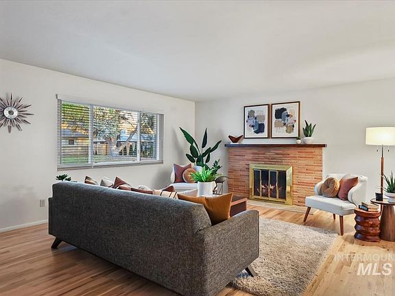 A blend in mid-century character and modern color confidence, this Winstead Park home turns heads with its color-drenched exterior and laid-back, design-forward vibe. Inside, original hardwood floors ground sun-filled spaces that feel warm, organic, and comfortably lived-in. The fireplace adds texture and balance, creating a cozy focal point for gatherings both casual and relaxed. The kitchen embraces the trend of living around the table—a generous dining space seamlessly integrated with the cook’s zone for effortless connection and everyday ritual. Thoughtful updates pair timeless materials with fresh, curated finishes that feel intentional rather than over-designed. Outdoors, a lush canopy of mature trees frames a private retreat made for slow mornings and golden-hour evenings. The covered patio extends living space year-round, blending indoor comfort with outdoor ease. Set in Boise’s beloved Winstead Park neighborhood—minutes from downtown, and trendy Garden City dining, the Boise River and the park itself, —this home offers design that’s comfortable, creative, and distinctly Boise - the ideal balance of comfort and accessibility. Whether you’re a first-time buyer, downsizing, or simply looking for a mid-century Boise home in a friendly neighborhood, this Winstead Park gem is move-in ready and waiting for its next chapter.