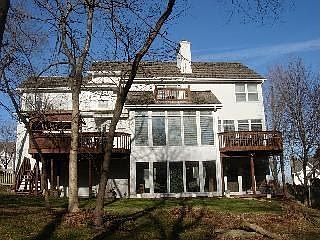 Fantastic wooded lot that goes beyond fence. Three decks overlooking the trees. One deck has a hot tub. Mstr bdrm has a sitting rm with frpl & martini deck. Heated tile flrs in kit/hearth rm, lower level has rec rm & kitchenette. Workshop with dbl doors. Current owners opted not to join the HOA but