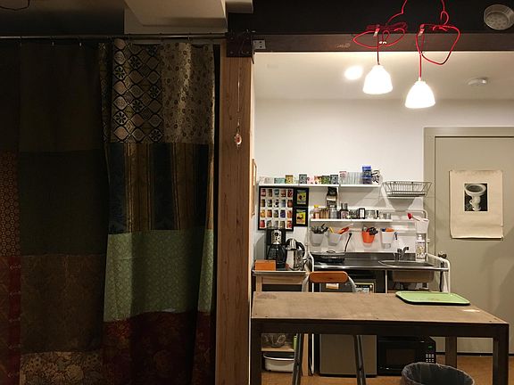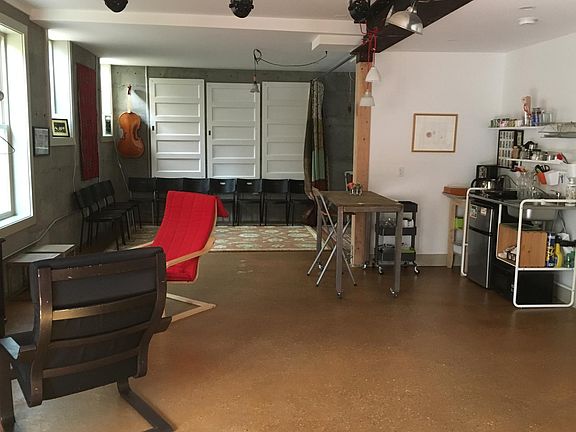 An artists studio available from January 1st - April 30th 2021. This is a work/live space. Most furniture are on casters and can be moved around. The space is divided into two areas. There is a bed behind a theatre curtain. Kitchenette with induction hot plate, Breville oven, microwave and instapot. The bathroom has a large shower. The studio is very spacious, airy and bright. Concrete floors with area rugs, a large gas stove that heats up the place. This is a no smoking studio. All utilities are included, water, heat, internet, electricity and garbage. Cat and or small dog is allowed. Parking is off street. There is a laundromat two blocks away.