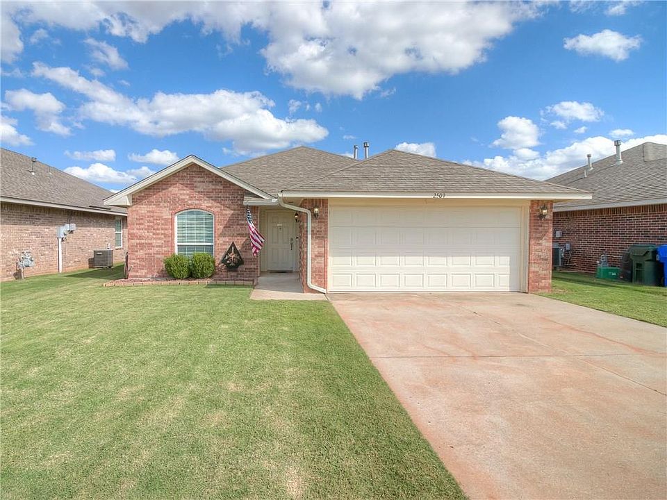 Great opportunity to get into a well kept 3 bed, 2 bath, and 2 car garage home. Roof replaced in 2015 and new carpet throughout. Home offers great access to I-35, Tinker, and the University of Oklahoma. Additional features include large kitchen with plenty of counter space and large living area. Friendly neighborhood offere fishing pond, jogging trails, and parks.