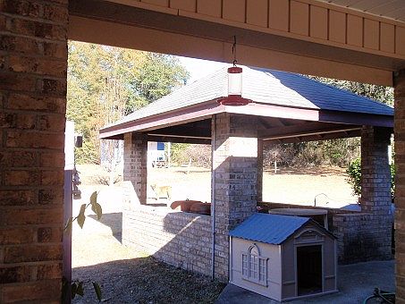 Beautiful and well kept brick home on 2.5 acres, has 3BR/1.5BA with gas stone fireplace, hardwood floors, central heat pump, appliances included, double carport, paved circular driveway, well and septic, shop, gazebo behind home (great for grilling), 1BR efficiency apartment building (separate from home) with bath, kitchen and bedroom. Home has lifetime metal roof, sits well back from the road. Balance of land wooded, large oaks and other hardwoods. Great buy at below court house appraisal. Approximately one mile to Florida border, 60 miles to Panama City beaches and Choctawhatchee Bay.