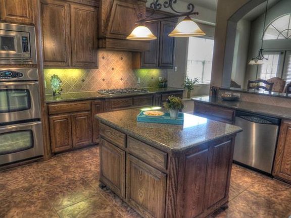 ENTERTAINER'S DELIGHT! Entertain around breakfast bar in the kitchen, in the family room next to the kitchen & breakfast area, outside by the outdoor fireplace & upstairs in the game room or media room! Island kitchen boasts granite, gas cooktop, SS appliances, walk-in pantry & double ovens. Split master retreat includes sitting area, private access to backyard, huge separate shower, jetted tub & WIC. Fridges & TVs convey with acceptable offer. 06/19/15