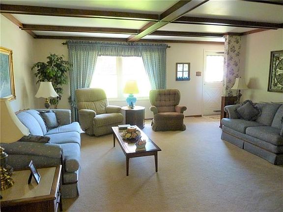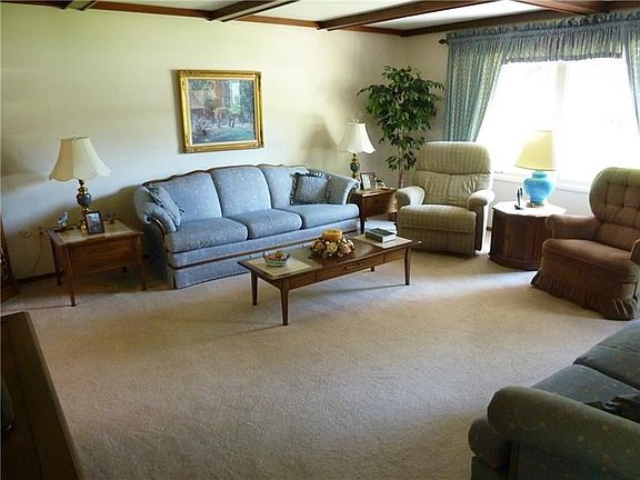 Lovely well-kept home with many upgrades! custom built beamed ceiling in living room; newer hot water tank; covered rear patio; shed in back yard; large bright gameroom and bar, with half bath, and additional hobby area in lower level. Rear windows were replaced; Remodeled full bath; Move-in ready!