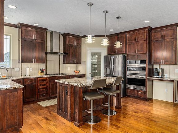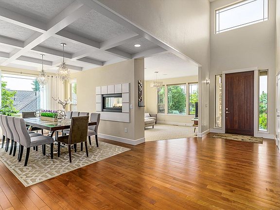 Step into elegance & comfort w/ this custom built Modern Prairie-style home embodying cozy sophistication. Impeccable craftsmanship flows through its thoughtful layout. As you enter, 18ft ceilings adorned w/ crystal chandeliers & hardwood floors welcome you. The main living space offers relaxation, a cozy TV room, & a versatile den/office. The elegant dining rm w/ coffered ceilings, & a see-through gas fireplace sets the stage for intimate gatherings. The connected kitchen features a marvelous granite-top island, custom cabinets, walk-in pantry & high-end appliances. Open the double doors to a private oasis, a beautifully landscaped backyard w/a covered patio & a firepit. Natural light bathes the main level, including a spacious primary suite w/a luxurious spa-like bathroom. Upstairs, a 2nd primary suite w/a full bath & additional 2 bedrooms share a jack-&-jill bathroom. The daylight basement adds more living space, w/ a granite-top peninsula, bedroom, full bathroom, and a Wet Sauna.