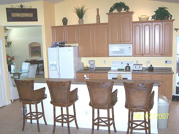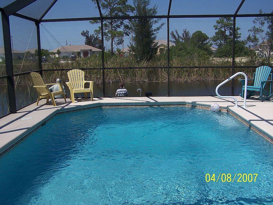 Immaculate 4 bedroom 2 bath oversized 2 car garage freshwater canal pool home! This property built in 2005 boasts over 2200sf of living area, large kitchen with loads of cabinet space, solid surface countertops and island that opens up to the large family roof, spacious master bedroom and bathroom, high ceilings throughout, tray ceilings with crown and rope lighting, tons of storage, massive outdoor living area which includes, huge lanai and pool area, concrete dock with fantastic water views, lush landscaping, fruit trees, fenced yard and so much more. Close to restaurants, schools and shopping.