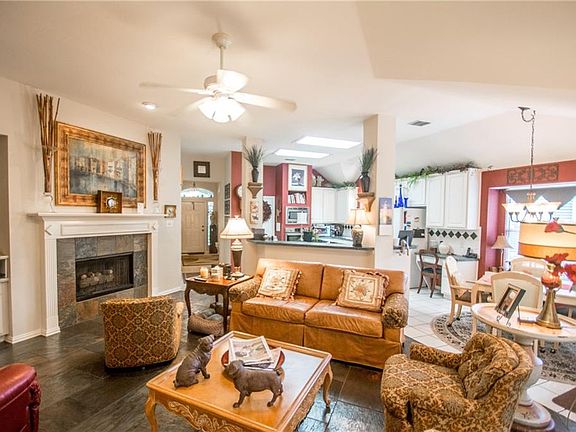 Spacious 3 bedroom 2 bath home with 2 living 2 dining and a study off the entry nestled in the highly sought after neighborhood of Southridge 2. This is the home you have been looking for! Amazing 1 story split bedroom floor plan loaded with natural light and soaring ceilings. The impeccable landscaping is just the beginning. The numerous upgrades include: SS Apps, large island with drop in electric range, tile back splash, breakfast bar, 2 inch blinds, gas log slate fire place, covered & open patio area, pebble stone pathway in the back yard, sprinkler system, & much more. The master suite boasts dual closets, garden jetted soaking tub, sep shower, dual sinks & more. This home is the whole package! View today!
