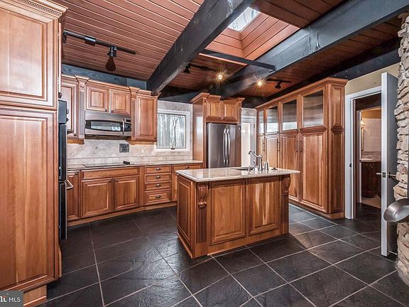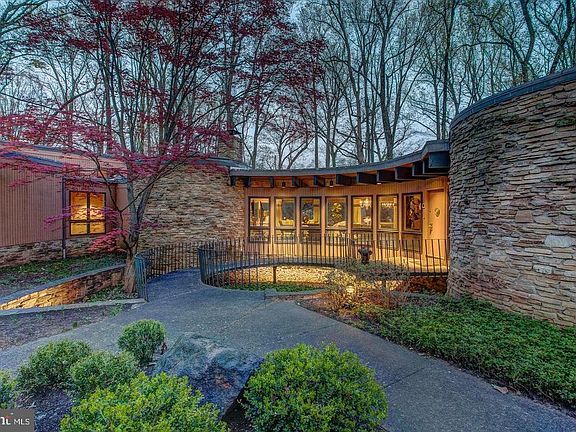 "The Round House in the Woods," is a truly spectacular home, where every detail has been accounted for. Architecturally designed & inspired, this magnificent home and property boasts 5 bedrooms and 4 baths with over 4,200 sf ft of living area and is situated on almost 3 acres. Centrally located in the Greenspring Valley, amenities include two-16 ft Geodesic Skylights,12,000 sq ft of stonework, luxurious master bedroom and bath, generous closet space, a gourmet kitchen, custom fixtures, cantilevered stone drum fireplace, curved glass wall, 3,000 sq ft patio, deck and a 3 car attached garage. Looking for a home that offers peace & tranquility as soon as you step onto the property? Schedule a showing today.