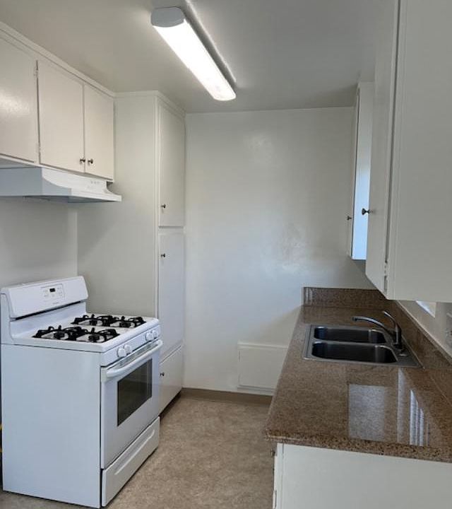 This is a two-bedroom, one-bath apartment with a comfortable layout. The living room and bedrooms feature carpet, while the kitchen and bathroom have laminate flooring. The unit includes standard closet space and a functional kitchen with a stove, as well as plenty of Storage space throughout. Clean and move-in ready near El Camino College.