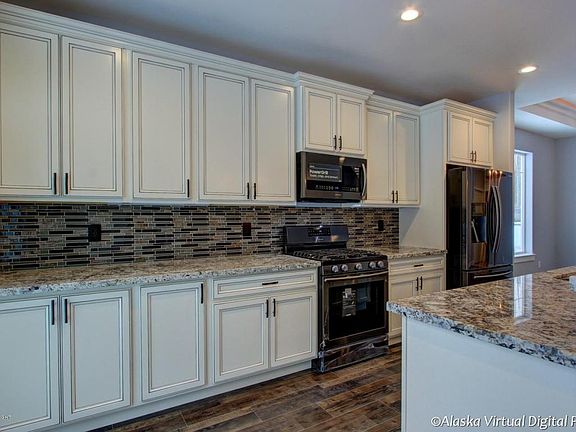 Another GORGEOUS new home by Elegant Homes. This one is almost complete. Huge 3 car gar., separate office, Granite Counters thru out, upgraded cabinets, custom tile, custom ceiling in living rm.,upgraded lighting pkg. ,lrg rock gas fireplace w/ built ins, beautiful master suite, Conveniently located just out of Wasilla city limits.... This builder participates in the preferred builders program.