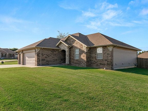 Immaculate 4 bedroom, 2 full bath home in great Ozark location! Offers open floor plan, living room with gas fireplace, kitchen has breakfast bar seating, back splash, plenty of cabinet space plus pantry cabinet and dining area. Large master bedroom has tray ceiling and own private bathroom with dual sink vanity, walk-in shower and walk-in closet. There are three additional bedrooms, full bathroom and laundry room! Patio out back with large, privacy fenced yard! Home has nice 3 car garage and sits on corner lot in cul-de-sac!! Quick access to Ozark West schools and Hwy 65!