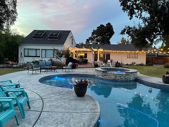 Welcome to a one of a kind, updated, retro ranch style home in Visalia's College Acres neighborhood. From the beautiful landscaping, to the interior details, no corner of this gorgeous home has gone unnoticed. As you enter the front Dutch door you are immediately greeted with a lovely living room and vista of the pool and park-like setting in the backyard. Inside is pet-friendly flooring, roman shades, fireplace, and endless custom-built storage! The kitchen features stainless-steel appliances and built-in brick barbecue in the large family room. The master on-suite has a jacuzzi tub and separate rain shower. A sun-room adjacent to the family room is currently used as an office and library but would be a perfect home gym space. The entire home is setup with an alarm system (motion detection and doorbell, along with video). Relax in your own private oasis: highlights a spacious backyard with oaks shading the expansive garden rooms, pergola, and large newer in-ground pool and spa with soothing waterfalls. Don't wait to schedule to view this one of a kind property today!