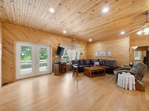 30 ac with a 2100 sq ft ranch home of 3BD/2BA, at the top of the mtn where no one can see you. Open concept kitchen - dining - living rooms, hardwoods floors, knotty pine vaulted ceilings & walls, large kitchen pantry, appliances remain, large walk-in closet, Mud room is also a large laundry rm w/ a private access, wrap around 12X90 L shape front deck & a 10X90 L shape open patio. HVAC System: Dual Thermal Ground Loop Heat Pump / Temp Regulated with Propane Gas and Electric. Shed w/carport, chicken coop, pond, mature timber, mixture of terrain, some fencing, wildlife, great hunting grounds, in Greenbelt Tax Exp (lower tax rate), No restrictions, mtn views, private & secluded (cannot see home from the road) lovely country rural location, large garden area,
