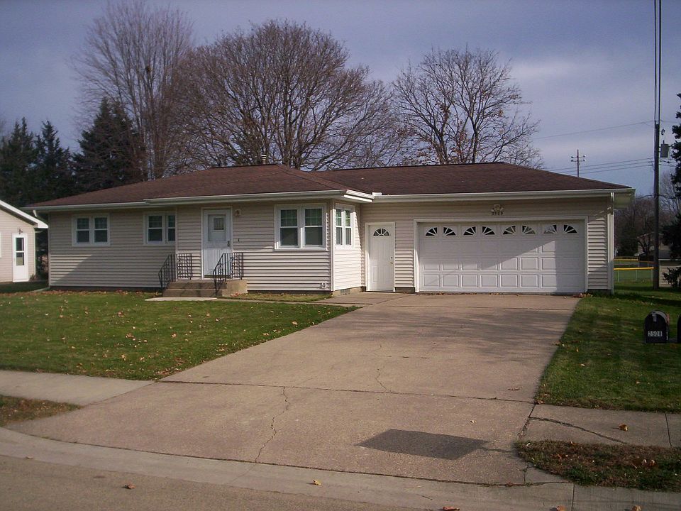 3 bedrooms on main level with bathroom, 1 bedroom in basement and 3/4 bathroom, full basement with laundry hookups, window treatments, electric range/oven, refrigerator, central air, nice back yard, on and off street parking, 2 car attached garage. Call Steve at 563-357-1041. Tenant responsible for all utilities, water, sewer, solid waste, gas, electric service. Lawn care and snow removal Provided.